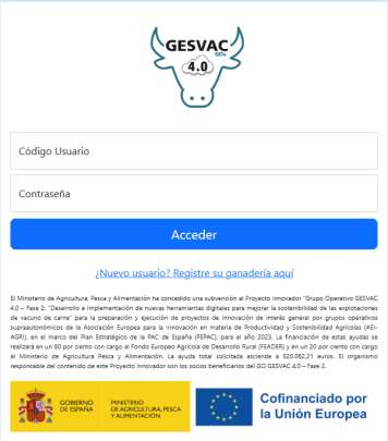El Proyecto Innovador “Grupo Operativo GESVAC 4.0 – Fase 2: Desarrollo e implementación de nuevas herramientas digitales para mejorar la sostenibilidad de las explotaciones de vacuno de carne” ha puesto en marcha el acceso a la plataforma GESVAC4.0 a los ganaderos independientes que no pertenecen a alguna de las asociaciones del proyecto (Limusina, Charolesa, Blonda de Aquitania y cruces mestizo). Para ello, los ganaderos que deseen integrarse en la plataforma deberán enviar una solicitud a la dirección de correo electrónico ganaderias@gesvac.org, desde la cual se les facilitará un usuario y contraseña para el acceso.